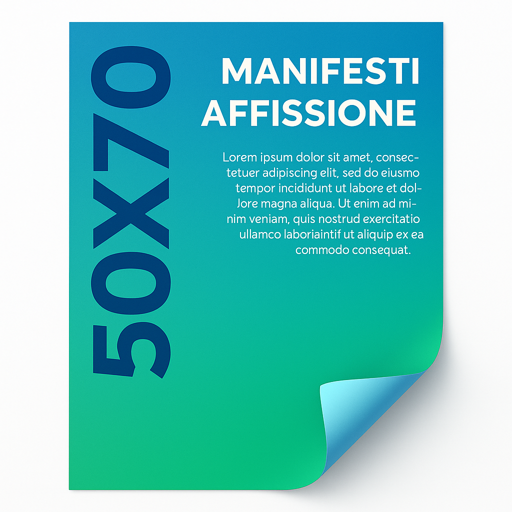 Porta il tuo messaggio ovunque con i manifesti 50x70 cm, ideali per campagne pubblicitarie di forte impatto. Questo formato compatto ma visibile si presta perfettamente all’affissione sia in spazi interni che all’aperto. Realizzati su carta BlueBack da 120gr, composta da cellulosa riciclata, i manifesti garantiscono resistenza a pioggia, sole e vento. La superficie bianca assicura colori vivaci e dettagli definiti, mentre il retro blu impedisce che affissioni precedenti interferiscano con la nuova stampa. Grazie all’impiego di inchiostri ecologici a base d’acqua, ogni stampa risulta brillante, durevole e rispettosa dell’ambiente. Perfetti per pensiline, pannelli comunali, ingressi di negozi e gallerie commerciali: ovunque ci sia bisogno di attirare l’attenzione in modo professionale e sostenibile.